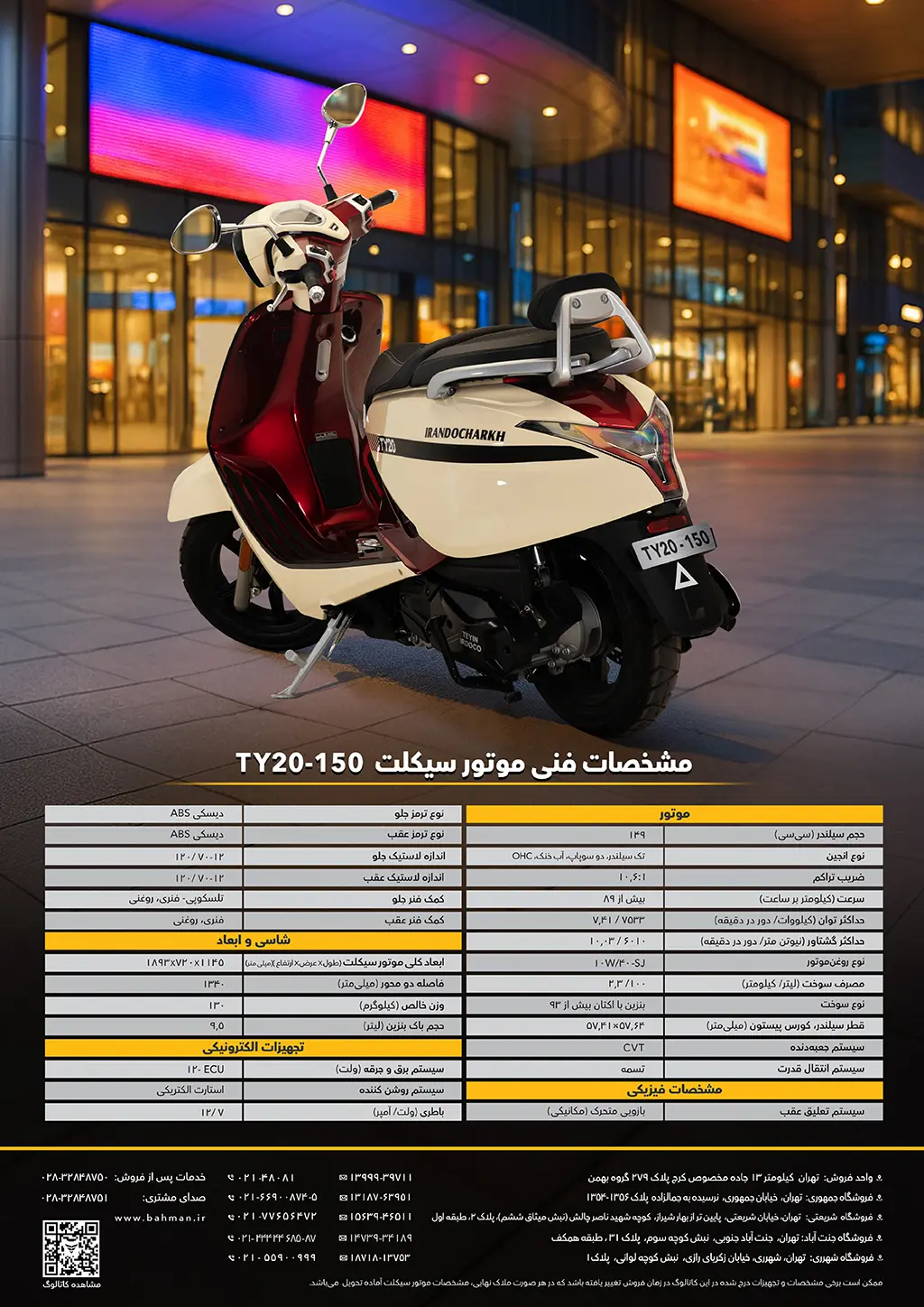 اکنون TY20-150 را از ایراندوچرخ رزرو کنید!